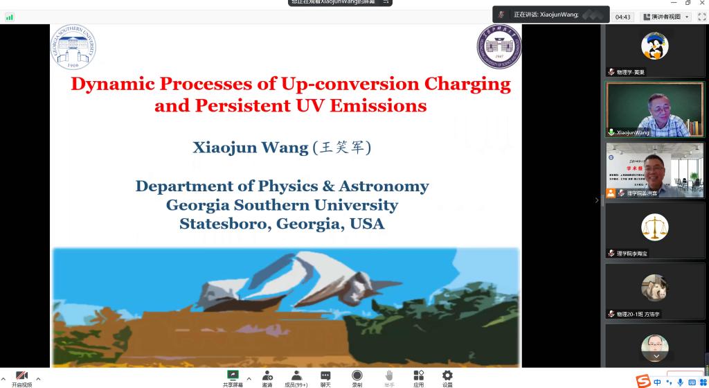 14/ 2022-11理学院邀请发光领域国际知名学者王笑军教授作科技讲座11月12日,应理学院邀请美国南佐治亚大学终身教授王笑军博士通过腾讯会议为理学院、材料学院和环化学院的部分本科生、硕士生和教师约300人做了题为“Dynamic Processes of Up-conversion Charging and Persistent UV Emissions”的学术报告。王教授研究领域为荧光材料的光学性质,激光光谱,激发光动力学过程。曾担任东北师范大学,吉林大学,中科院长春光机所的客座教授。现为Nature出版集团Light:Science & Applications编辑...