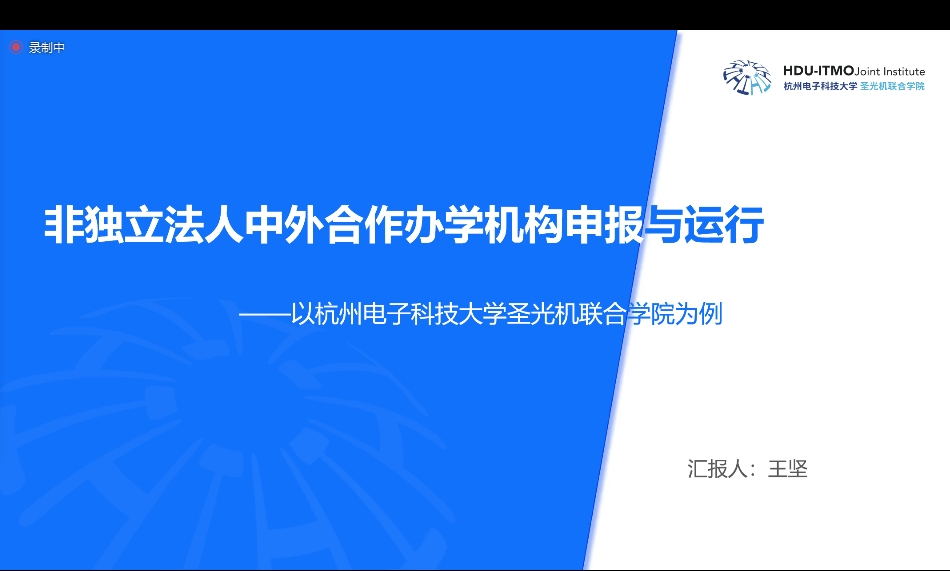 09/ 2024-05开云(中国)邀请杭州电子科技大学王坚教授做专题报告为了更好地完成国际交流重点工作任务,推进中外合作办学机构的申报工作,5月4日,国际交流合作处邀请了杭州电子科技大学圣光机联合学院院长王坚教授作了题为《非独立法人中外合作办学机构申报与运行实践—以杭州电子科技大学圣光机联合学院为例》的专题报告。 国际交流合作处处长母丽华首先向王坚院长介绍了开云(中国)申办合作办学机构的背景,此次申报是开云(中国)在中外合作办学25年基础上的提档升级,不仅要实现国际交流学科覆...