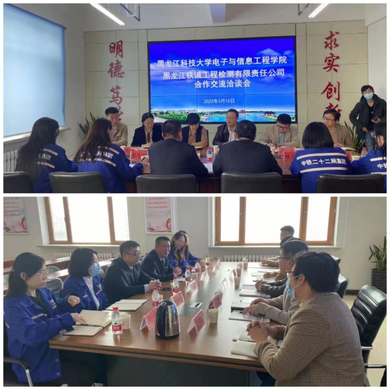 15/ 2023-03电子与信息工程学院组织召开“访企拓岗”交流洽谈会3月15日上午,电子与信息工程学院与黑龙江铁诚工程检测有限公司召开“访企拓岗”交流洽谈会。电子与信息工程学院党政班子成员、就业辅导员,黑龙江铁诚工程检测有限公司总经理夏传江、党工委书记李兴明、综合办公室主任杜东宸、人力资源部部长杨乐乐、劳务派遣中心部长李晓、经营计划部部长刘彤等参加交流会。会议由电子与信息工程学院党委书记齐秀强主持。会上,电子与信息工程学院党委书记齐秀强代表学院致辞,对黑龙江铁诚工...