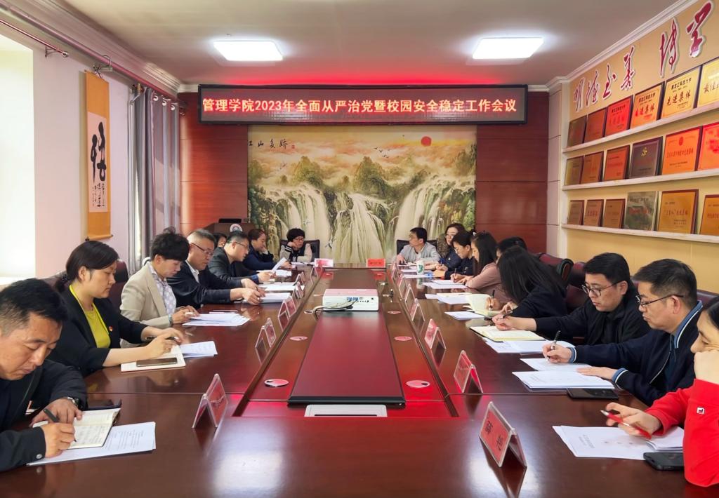 16/ 2023-05管理学院召开全面从严治党暨校园安全稳定工作会议为深入贯彻落实好2023年学校全面从严治党工作和安全工作会议精神,5月15日,管理学院在三楼会议室召开了全面从严治党暨校园安全稳定工作会议。会议由学院党委书记何景洋主持,学院党政班子成员、各系(办、中心)负责人及各党支部书记参加了会议。会上,学院党委副书记徐海英传达学习学校2023年全面从严治党工作会议精神,副院长洪亮传达学习学校2023年安全工作会议精神。学院纪委书记张倩传达学习《关于学习<省纪委监委机关、省...