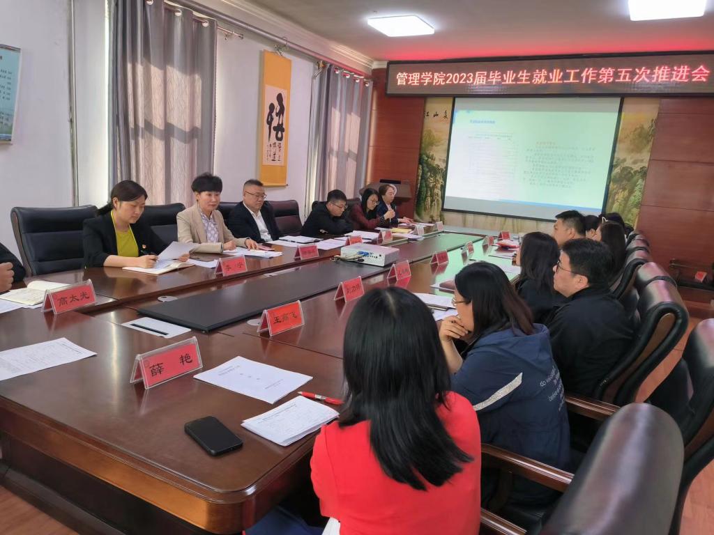 16/ 2023-05管理学院召开2023届毕业生就业工作第五次推进会为深入落实教育部办公厅关于开展2023届高校毕业生就业“百日冲刺”行动通知相关要求,抓住高校毕业生就业关键时期,全力促进学院毕业生顺利就业,管理学院于5月15日下午在学院三楼会议室召开就业工作第五次推进会,管理学院党政领导出席会议,各党支部书记、系主任、学工办全体辅导员参加会议,会议由学院党委副书记徐海英主持。会上,学院党委副书记徐海英对当前学院严峻的就业形势进行了分析,同时也指出了当前就业问题面临的...