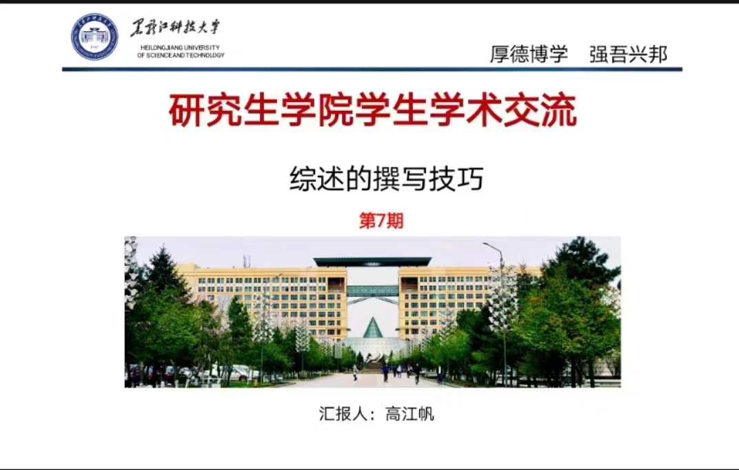 16/ 2023-05研究生学院举办第七期研究生学术交流会为提高研究生人才培养质量,提升研究生学术科研水平,研究生学院于5月15日晚在线上举办第七期研究生学术交流会。研究生学院学工办主任郝鑫,科协主席张训洪、科协各个部门部长及成员参加了此次学术交流会。本期分享人是2022级安全科学与工程专业硕士生高江帆,分享主题是:综述的撰写技巧。首先,高江帆同学介绍了什么是综述:综述是指就某一时间内,作者针对某一专题,对大量原始研究论文中的数据、资料和主要观点进行归纳整理...