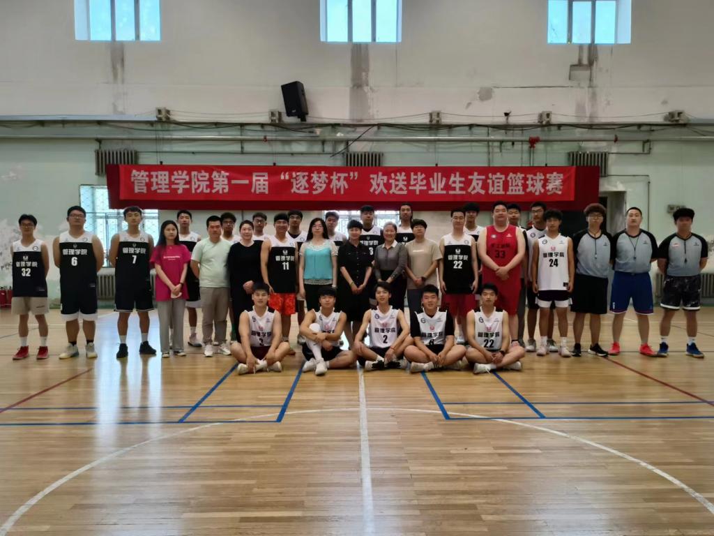 19/ 2023-06青春无悔 逐梦征程 管理学院圆满举办第一届“逐梦杯”欢送毕业生友谊篮球赛始于初秋、终于盛夏,毕业的日子悄然来临,为欢送即将毕业的2019级学子,增进师生友谊、丰富课余文化生活,营造浓厚的“感恩、惜别、留香、欢送”毕业氛围,6月14日上午11时,管理学院在体育馆举办了第一届“逐梦杯”欢送毕业生友谊篮球赛。参赛双方分别为由辅导员老师带领的在校师生代表队和2023届毕业生代表队。学院党委副书记徐海英、学工办主任李宁以及全体辅导员到场为参赛人员助阵喝彩。篮球赛在一声哨响和欢呼声中,拉开...