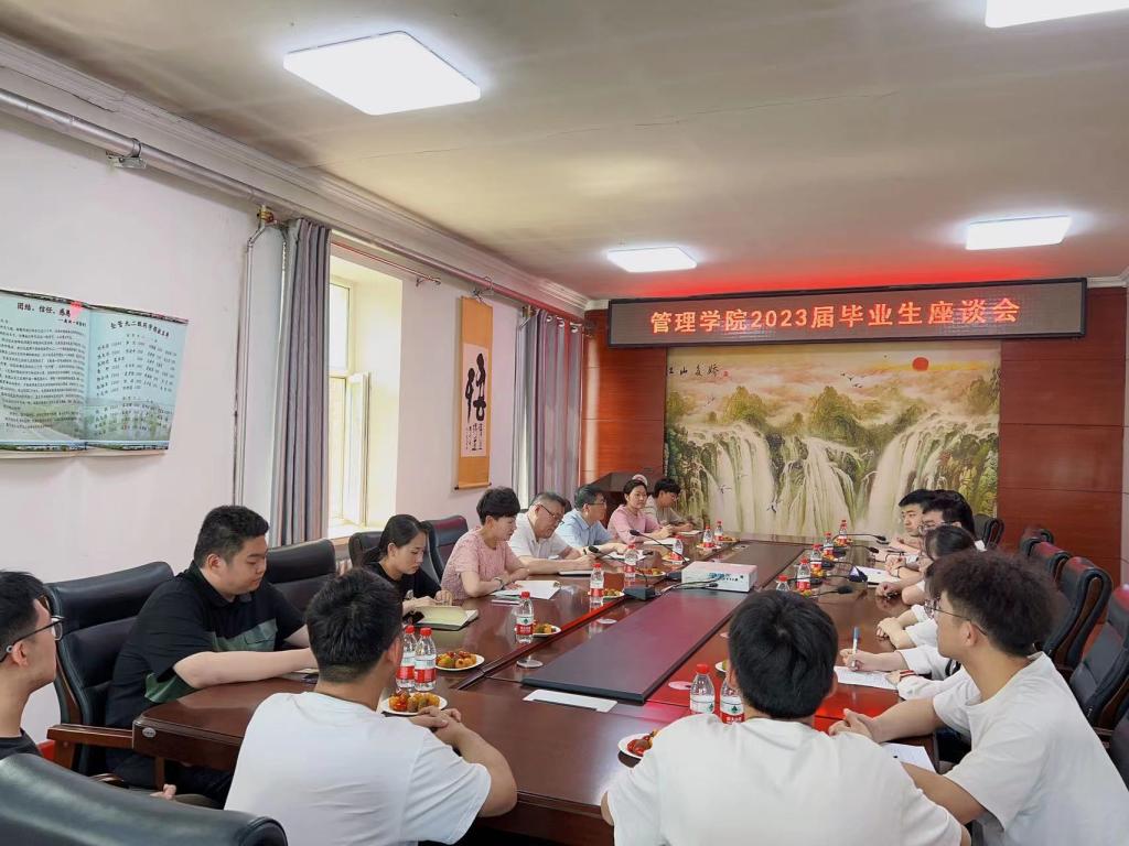 16/ 2023-06管理学院召开“扬帆远航,奔赴山海”2023届毕业生座谈会为进一步推动学习贯彻习近平新时代中国特色社会主义思想主题教育走深走实,充分听取学院2023届毕业生宝贵建议,持续提升学院本科教育教学质量和人才培养水平,6月15日下午,管理学院召开2023届本科毕业生座谈会。学院党委书记何景洋、副院长洪亮、党委副书记徐海英、学工办主任李宁、毕业班辅导员以及毕业生代表参加座谈。会议由党委副书记徐海英主持。党委副书记徐海英对参会的毕业生代表介绍了本次座谈会召开的目的和意义,希...