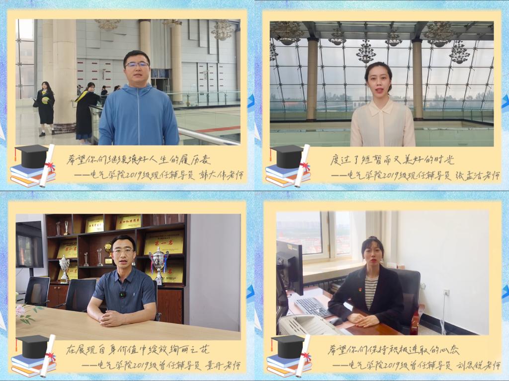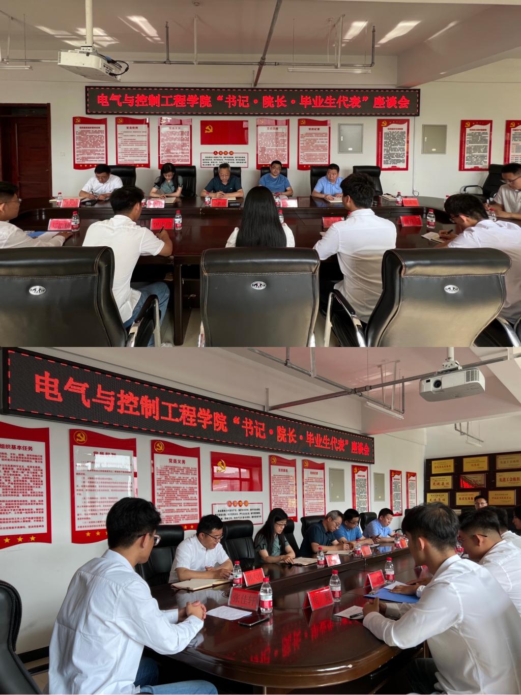 19/ 2023-06电气学院召开“书记 院长 毕业生代表”座谈会6月16日下午,电气学院在朝阳楼0607会议室召开“书记 院长 毕业生代表”座谈会,2023届的9名毕业生代表参加座谈会。学院党委书记李鹏银、院长苏勋文、副院长刘丹丹、副院长李忠勤出席座谈会。座谈会由学工办主任、毕业班辅导员韩大伟主持。座谈会上,毕业生代表们畅所欲言,回顾了大学四年的成长历程,展望了未来生活的美好前程,感恩了院校老师的精心培育,并结合在校四年的实际感受,针对学院教育教学、课程安排、生活保障等...