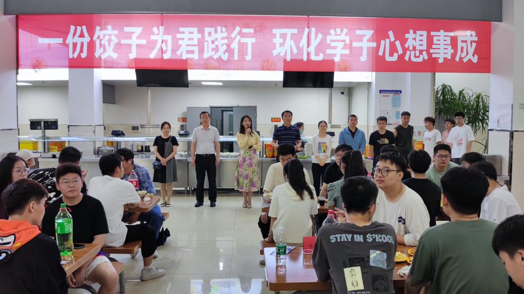 21/ 2023-06环化学院举办送别2023届毕业生饺子宴6月20日上午,环化学院在沁香园二楼举办送别2023届毕业生饺子宴,为毕业生践行。环化学院党委书记苗雨、副院长景介辉、各系主任及毕业班班主任参加,饺子宴由学院党委副书记樊晓东主持。践行宴上,党委书记苗雨为2023届毕业生送上了两点希望、一个祝福:一是此次共聚一起吃送别饺子,既是送别也是期待再次相聚,希望毕业生离校也要念校,常回家看看;二是希望毕业生走出校园,要能吃生活的苦,努力工作,积极进取,早传捷报;三...