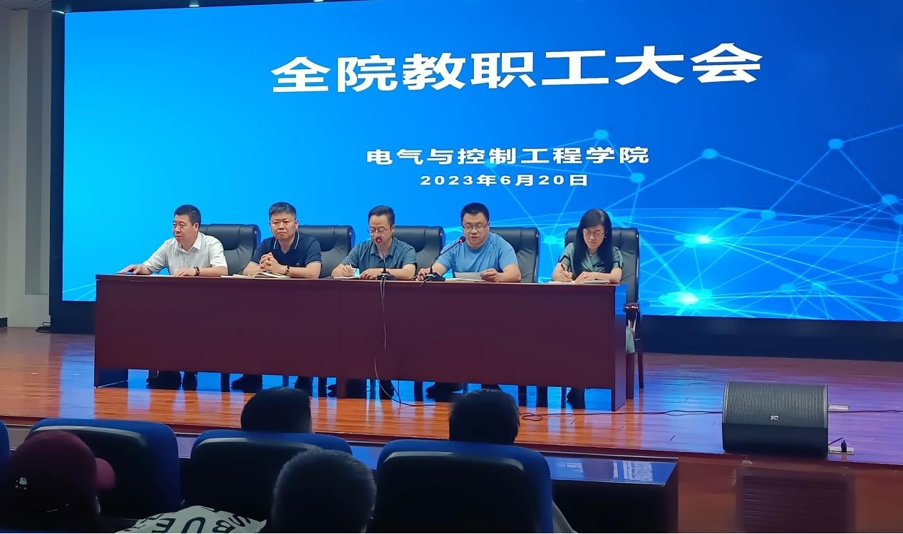 21/ 2023-06电气学院召开全院教师大会6月20日,电气学院在朝阳楼0131会议室召开了全院教职工大会暨六月份教职工政治理论学习会。会议由党委书记李鹏银主持,学院无监考任务教师参加了会议。会上,副院长李忠勤就毕业设计后续工作、期末考试、工程实践教学等进行了安排部署,对广大监考教师进行了考务培训,强调了考风考纪工作;副院长刘丹丹从论文发表、专利申请、技术转化等方面强调了学术严肃性,对研究生就业工作及其他科研工作进行了安排部署;党委副书记、纪委...