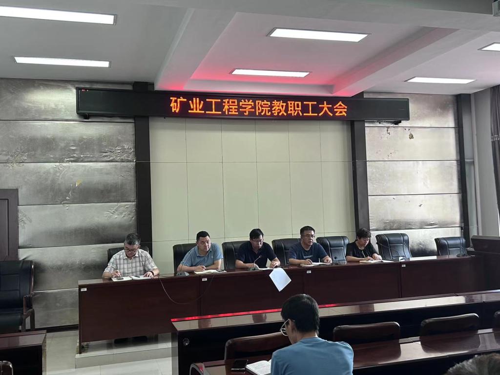 18/ 2023-08矿业工程学院召开教职工大会安排部署新学期工作8月17日,矿业工程学院在学院二楼会议室举行了全体教职工大会。会议由学院党委副书记李强主持,全体教职工出席会议。会上,院长肖福坤公布了学院班子成员的分工调整相关安排。随后各位领导分别就分管工作做了相应安排部署。党委书记刘海涛领学了《新时代高校教师职业行为十项准则》并就校园安全稳定工作进行了部署。会议指出,2023年工作任务艰巨,学院面临专业建设需要转型拔高,科研工作需要提质增效,博士点建设工作需要攻坚...