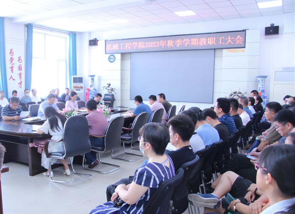 18/ 2023-08机械工程学院召开2023年秋季学期教职工大会为推进学院2023年全年工作和做好秋季学期开学启动各项工作,8月17日上午,机械工程学院在学院二楼会议室召开了全院教职工大会。会议由学院党委书记吕刚主持。会上,副处级辅导员毕强,副院长齐立涛,分别结合分管工作安排部署了学生工作、科研工作和研究生教育等具体任务。院长唐庆菊就学院行政工作作了阶段性总结和安排部署。一是对学院上学期在学科建设、专业认证、一流课程、省级团队等十个方面的主要成绩进行了简要总结,鼓...