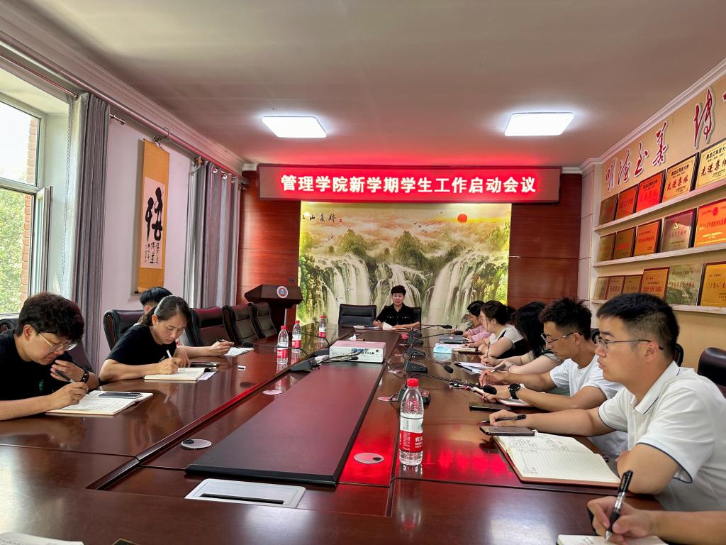 22/ 2023-08管理学院召开新学期学生工作启动会议迎接新学期,踏上新征程,8月18日,管理学院在学院三楼会议室召开新学期学生工作启动会议。学院全体辅导员参加,会议由党委副书记徐海英主持。会上,张茜对开学启动工作的相关要求和首周教育相关文件进行传达和解读,对于寝室调整相关工作进行安排;李宁强调本学期各战线各年级重点工作及学生返校工作相关要求,叮嘱辅导员要聚焦主责主业,强化责任担当,提升工作质量,打造亮点,清除盲点,做好学生教育与管理工作,科学高效推...