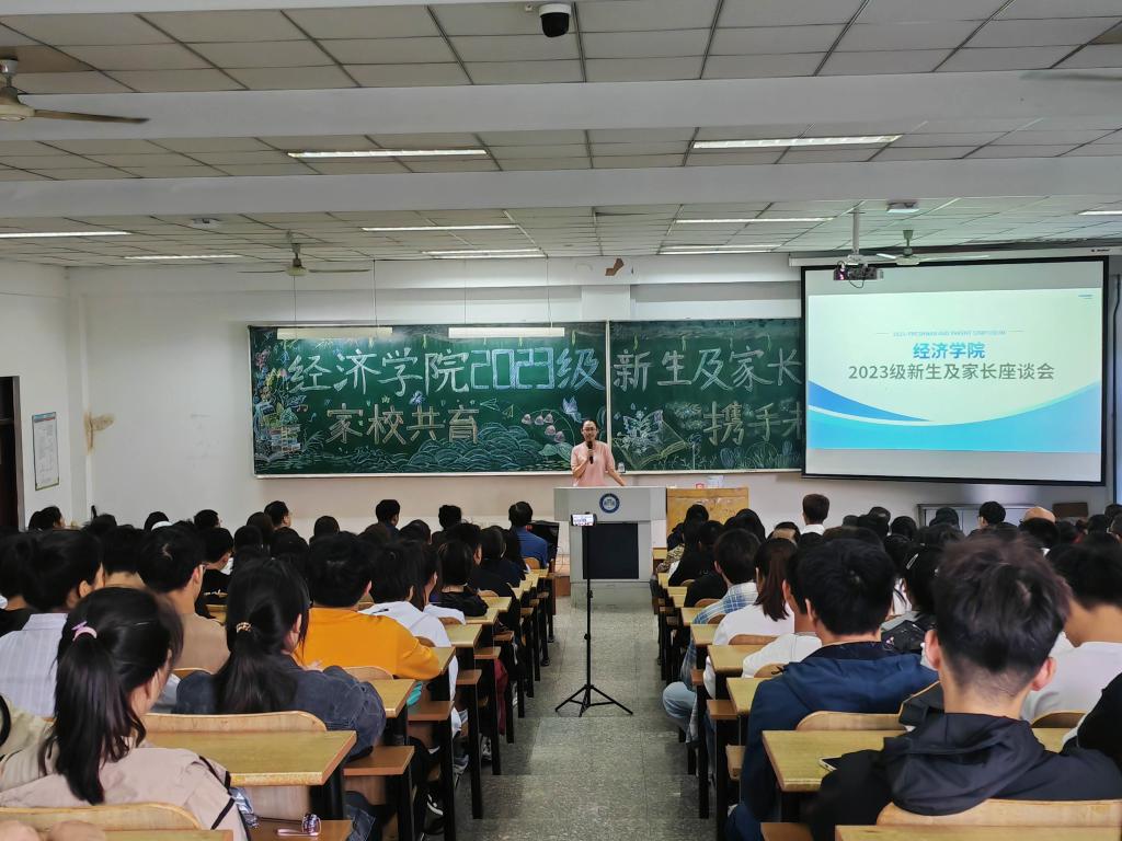 04/ 2023-09家校共育,携手未来——经济学院召开2023级新生及家长见面会为帮助新生及家长更好地了解学院基本情况,进一步加强学校与学生家长的密切联系,形成家校育人合力,实现家校携手高效育人的目的,经济学院于9月2日15时,在科厦S101召开2023级新生及家长见面会。学院党委书记雷金屹、学院院长孙永波、学院党委副书记邬丽群、学工办全体成员及新生班主任老师参加会议。此次会议由新生辅导员李笑晗主持。辅导员李笑晗老师围绕“大学与中学的区别”及“如何实现家校共育”展开介绍,强调学校教育...