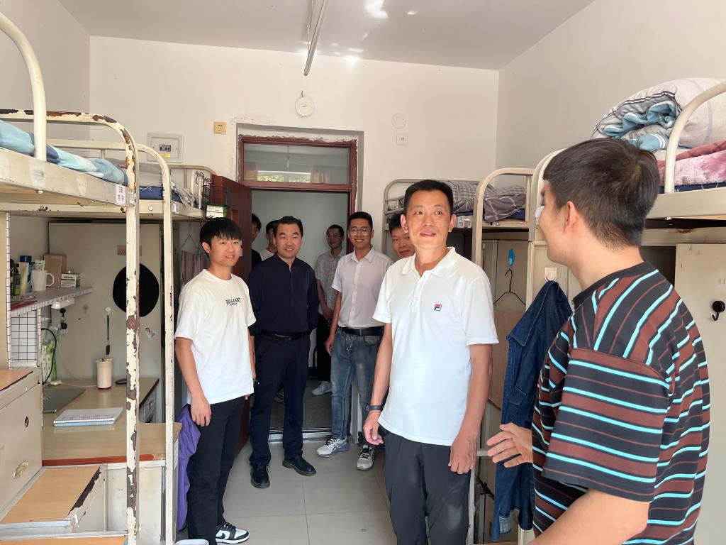 19/ 2023-09研究生学院专职学工干部深入宿舍走访慰问新生为深入了解2023级新生入学适应情况,增强新生安全意识,进一步加强宿舍安全管理,9月15日上午研究生学院党委副书记王伟强带领全体辅导员走进新生宿舍,与大家进行亲切的交流。走访过程中,王伟强亲切地询问2023级学生来校后的生活及学习情况,耐心地解答新生们提出的各种问题,帮助其解决生活困难,提醒同学们要提高安全防患意识,叮嘱寝室成员是一家人,希望同学们以学校为家,以寝室为家,共同营造良好的寝室环境和氛围,并鼓...
