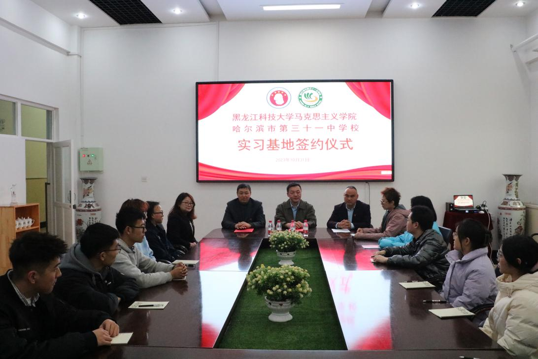 02/ 2023-11马克思主义学院思想政治教育专业2021级学生赴哈尔滨市三十一中学开展专业实习为扎实推进马克思主义学院人才培养,落实思想政治教育专业学生“见习、实习、研习”三习贯通的专业实习工作,增强学生专业实习实践能力,10月31日,马克思主义学院与哈尔滨市第三十一中学校举行实习基地签约仪式暨思想政治教育专业2021级学生专业实习启动仪式。签约仪式上,哈尔滨市第三十一中学校副校长王俊飞对学院领导、老师及同学们表示了热烈欢迎并介绍了办学理念。马克思主义学院副院长付明对实习学生提出了严格要求,希...