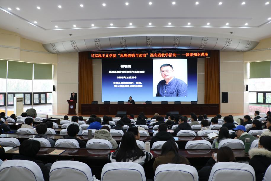 07/ 2023-11马克思主义学院开展“思想道德与法治”课实践教学活动——法律知识讲座为进一步学习贯彻习近平新时代中国特色社会主义法治思想,增强大学生的法律意识,培养法治思维,提升法治素养,努力把大学生培养成为社会主义法治的忠实崇尚者、自觉遵守者和坚定捍卫者,11月5日,马克思主义学院与校外实践教学基地——黑龙江良治律师事务所联合举办了“思想道德与法治”课实践教学活动。活动以专题讲座的形式展开,黑龙江良治律师事务所主任程培国律师为开云(中国)近200名大一新生做了题为《志于道 据于德 依于仁 游...