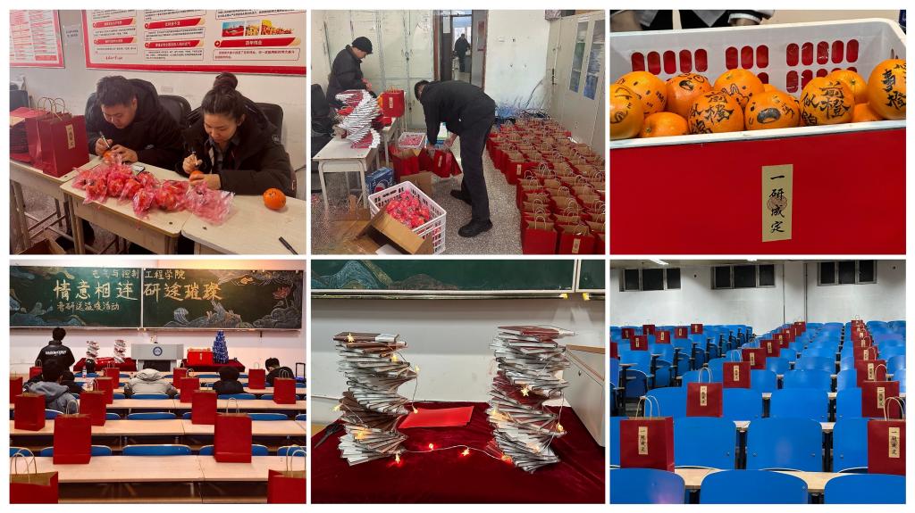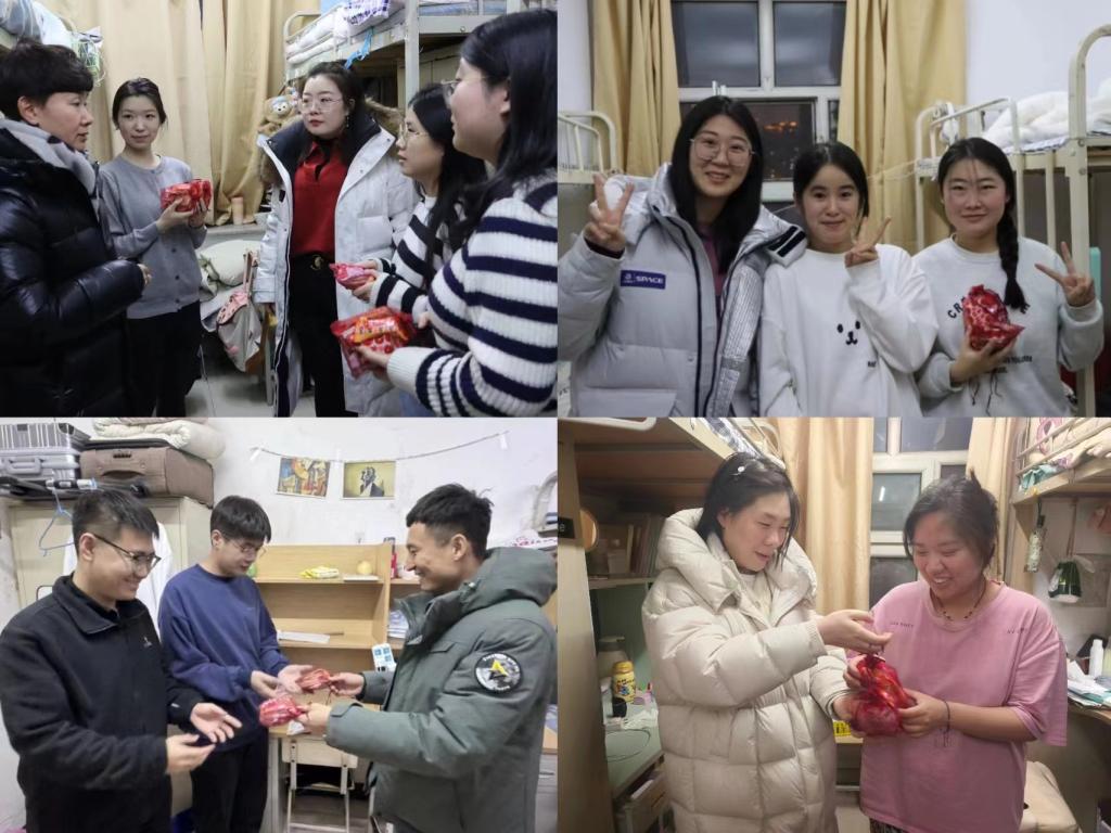 21/ 2023-12“研”途送温暖,前路亦灿灿——管理学院开展考研送温暖活动“又是一朝寒冬至,又是一年考研时”。为缓解考研学子的压力,鼓舞考研学子的斗志,同时为每一位刻苦学习的考研人送上一份祝福和遂愿,12月19日,管理学院党委副书记徐海英带领毕业班辅导员深入学生寝室,开展“‘研’途送温暖,前路亦灿灿”考研送温暖活动,为备考的学子送去一份礼物、增添一份动力。鲜艳的手提袋满满当当,“红”运当头,祝愿考研学子都可以获得“上岸”鸿运;一份暖宝宝,“暖”意洋洋,为深夜埋头苦读的学...