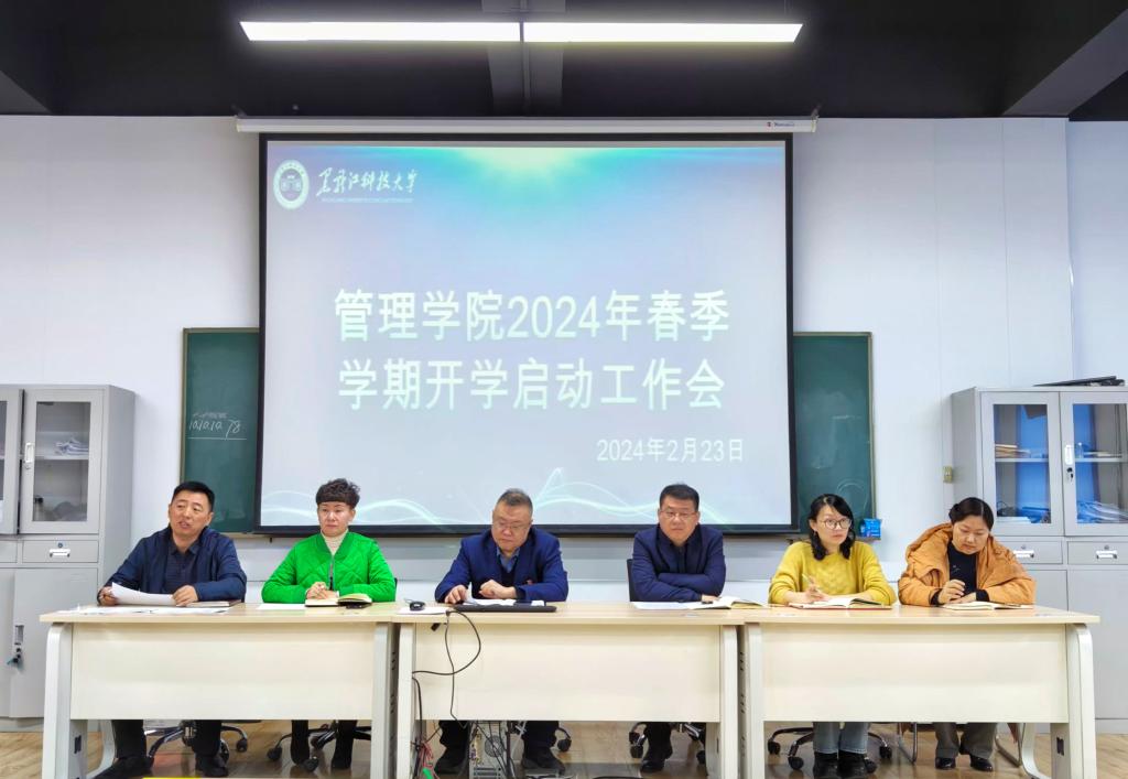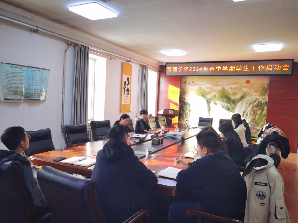 23/ 2024-02管理学院召开2024年春季学期学生工作启动会为进一步落实学校2024年学生工作会议要求,推动学院新学期各项学生工作平稳有序开展,2月22日下午 ,管理学院在学院三楼会议室召开2024年春季学期学生工作启动会。学院全体辅导员参加会议,会议由学院党委副书记徐海英主持。会上,副处级辅导员李宁对2023年学院学生工作进行总结,梳理了党建工作、团学组织工作、就业工作、心理健康工作、资助工作、征兵工作以及教育宣传工作特色亮点以及取得的成绩。党委副书记徐海英对学院202...