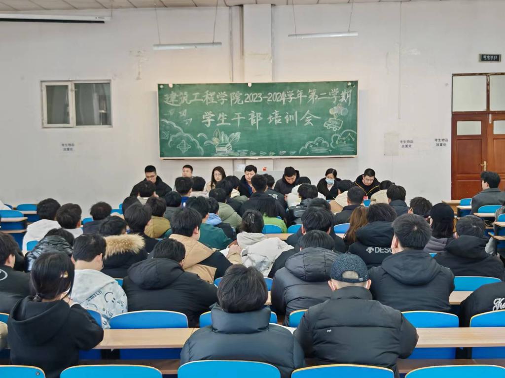 27/ 2024-02建筑工程学院召开2024年春季学期学生干部培训会为进一步增强学院学生干部的思想素质和综合素质,提升学生干部工作能力和服务水平,传承“建德筑能、守正创新”的建工精神。按照学生处下发的《关于做好2024年春季学期学生返校和开学启动工作的安排》及《2023-2024学年第二学期学生首周教育活动指导方案》相关要求,2月25日下午学院在主楼ES0105召开学生干部工作培训暨新学期启动大会。党委副书记展跃,全体辅导员及各班级班长、团支书,各学生组织负责人、部门负责人参加,会议...