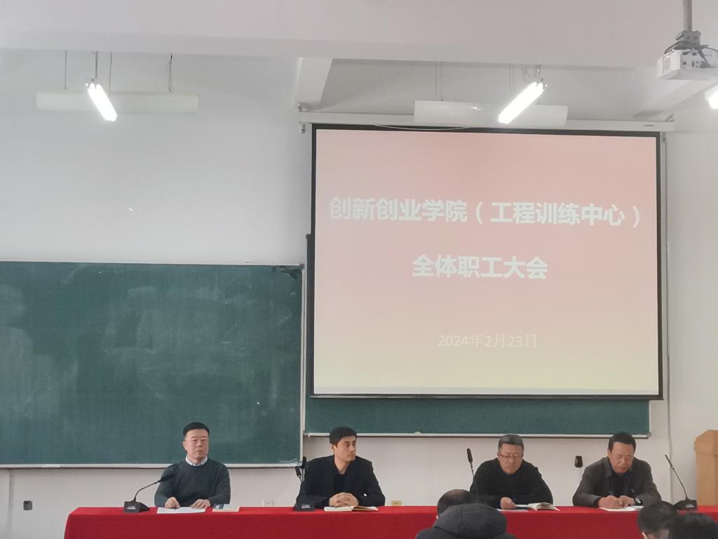 26/ 2024-02创新创业学院(工程训练中心)召开2024年春季学期开学启动会议2月23日上午,创新创业学院(工程训练中心)在中心320室召开春季学期开学启动会议。全体教职工参加会议,会议由学院(中心)党总支书记谭平主持。会上,副院长李强领学了意识形态文件、对假期科研工作进行了总结;副院长杨兆楠总结了假期双创工作,部署了新学期双创工作、工会工作;副院长卢文生部署了新学期开学各项教学工作、审核评估工作、实验室检查工作。谭平在会上强调,一是严谨细致做好开学各项启动工作,全体教职工要...