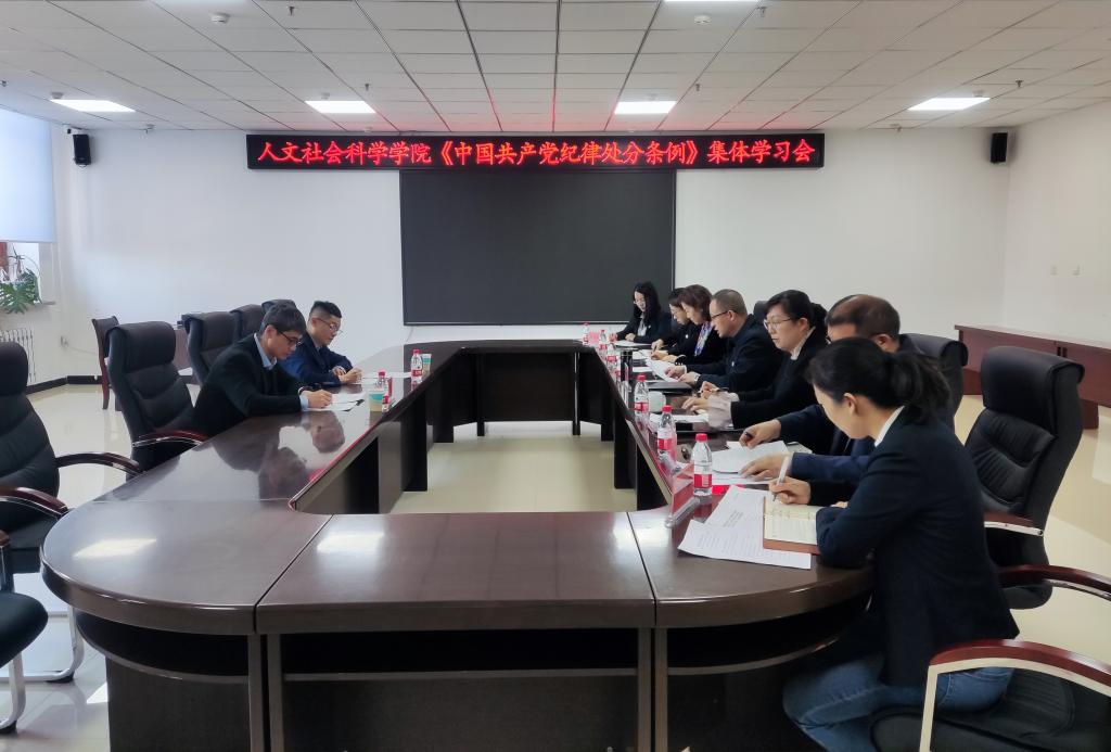 25/ 2024-03人文学院党委理论学习中心组专题学习《中国共产党纪律处分条例》3月25日上午,人文学院在朝阳楼0317会议室召开了党委理论学习中心组专题学习会。学校党委宣传统战部副部长吴维华、理论科科长范洪魁列席会议旁听。学院党委理论学习中心组成员参加学习会,会议由学院党委书记孙晓辉主持。会上,学习传达了习近平总书记重要文章——时刻保持解决大党独有难题的清醒和坚定,把党的伟大自我革命进行到底;省委理论学习中心组第二十二次集体学习会议精神和新修订的《中国共产党纪律处分条例》等内容...