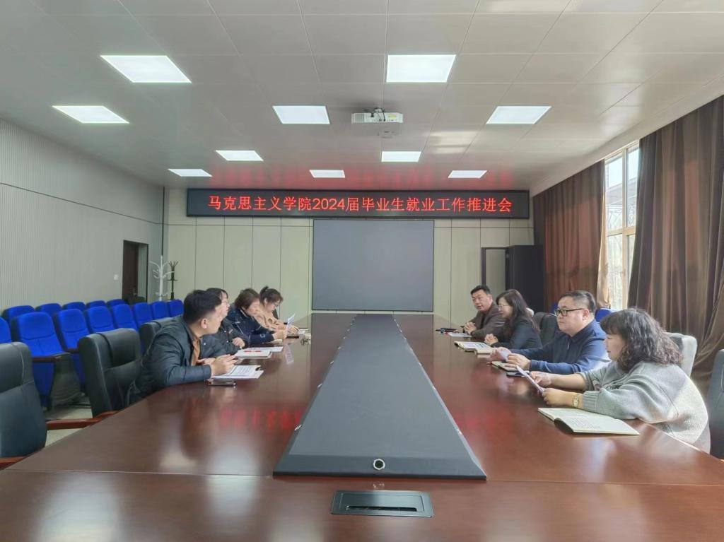 22/ 2024-03马克思主义学院召开2024届毕业生就业工作推进会为全面推进学院2024届毕业生就业工作,促进毕业生高质量就业。3月21日上午,马克思主义学院在科高二楼会议室召开2024届毕业生就业工作推进会,学院党政领导、专业教研室负责人、全体辅导员及毕业班班主任参加本次会议,会议由党委书记张影主持。会上,学院副处级辅导员赵红通报了毕业生签约情况、考研初试情况、省考选调生考试情况。分别从落实、落靠就业“四级包保”联动机制,建立“一生一策”帮扶台账,全力推动学生考研、考...