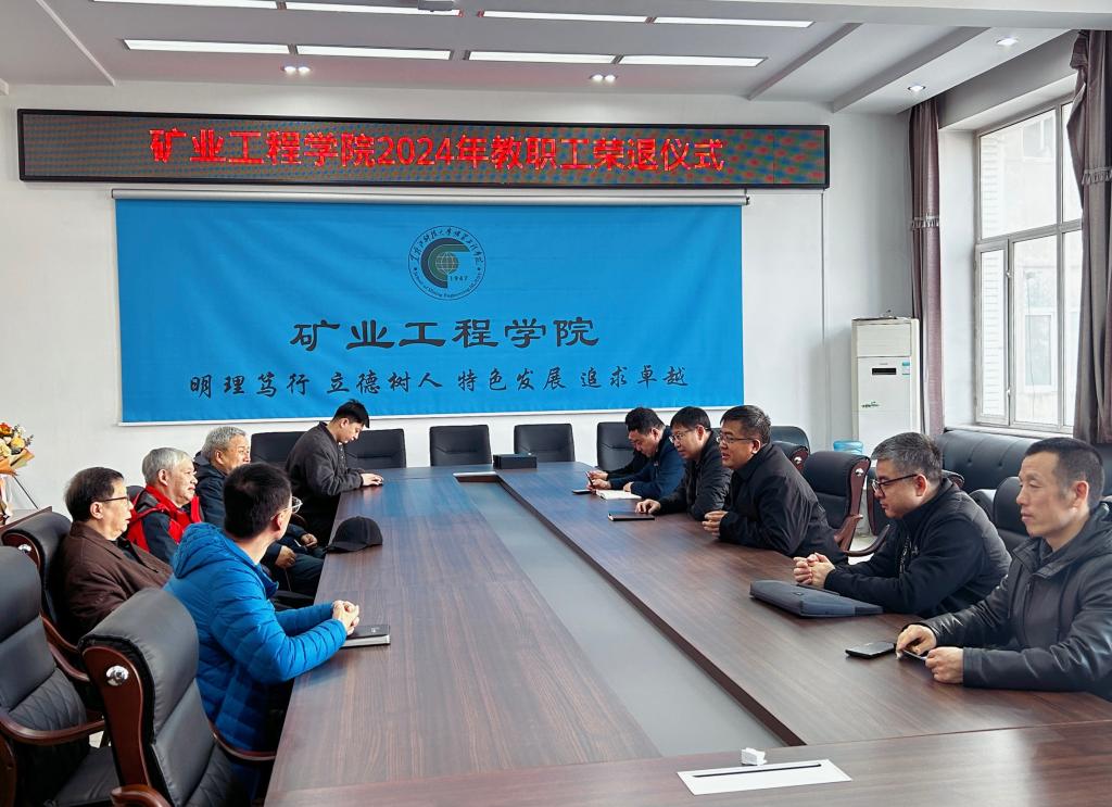 25/ 2024-03矿业工程学院举办2024年教职工荣退仪式翰墨书香世代流芳,育人灵杰桃李满园。3月22日,矿业工程学院举办了2024年教职工光荣退休仪式,学院全体领导班子成员、各科室主任、优秀青年教师代表以及李凤义、田贵友、殷伟等3名荣退教师参加仪式。会上,学院党委书记刘海涛在致辞中向荣退教师致以美好祝福,向他们为学校的发展,为矿业工程学科建设和学院改革发展中做出的重要贡献表示崇高敬意和由衷感谢。在交流座谈中,院长肖福坤和三位老师一起满怀深情地回忆了从教以来...