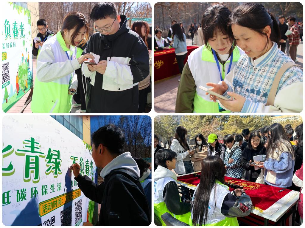 27/ 2024-03学校开展“植此青绿,不负春光”绿植领养活动为深入学习贯彻习近平生态文明思想,打造绿色环保、温馨美丽的校园环境,提高青年大学生生态文明意识,树立植绿爱绿护绿观念,校团委、校学生会于3月25-26日在沁芳园门口开展了“植此青绿,不负春光”绿植领养活动,广大学生积极报名,踊跃参与。活动伊始,学生会工作人员向在场的青年学生,详细的介绍了线上和线下的绿植领养方式,为同学们耐心细致的讲解了绿植种植方法和注意事项,引导青年学生积极参与到绿植领养活动中来。...
