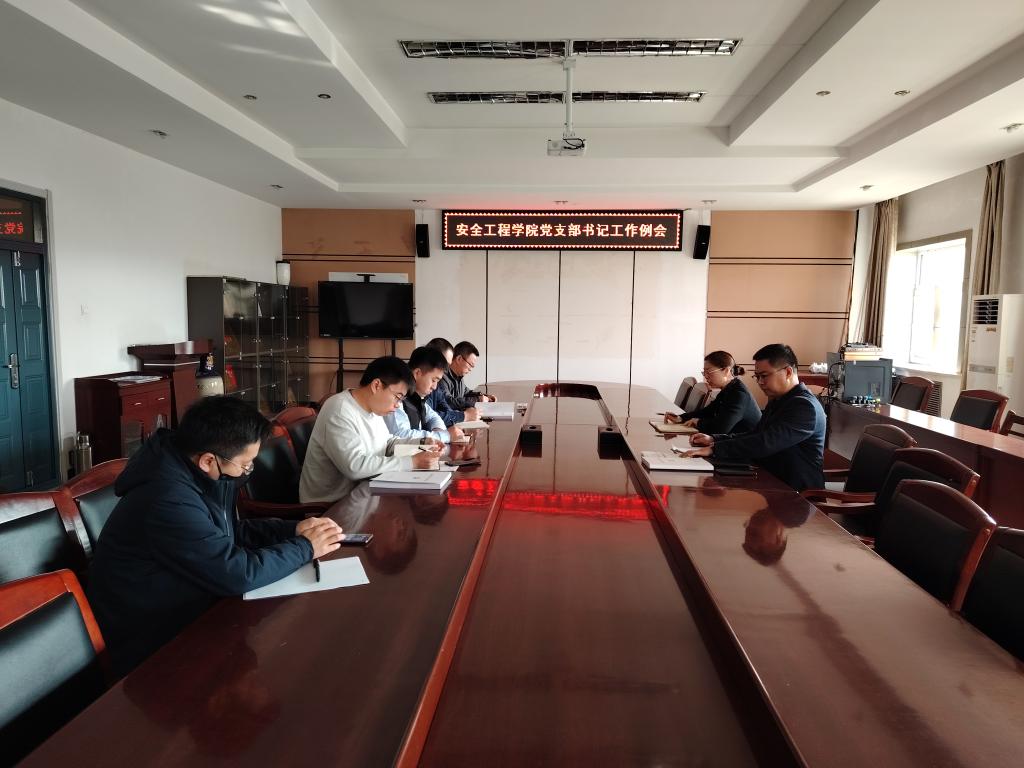 27/ 2024-03安全工程学院召开党支部书记工作例会3月27日上午,安全工程学院在学院二楼会议室召开党支部书记工作例会。学院党委书记王娟参加会议并讲话,全体党支部书记参加会议。会议由学院党委副书记郑红岩主持。会上,党支部书记立足学院“安如磐石”党建品牌,围绕“样板党支部”培育和创建、“一支部一特色”“一支部一品牌”建设情况进行了交流,就全年支部工作计划进行了汇报。郑红岩就进一步加强和规范支部建设,明确工作职责,分别围绕高校党支部工作纪实手册的规范记...