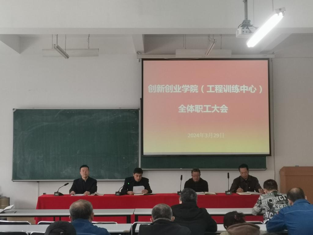 03/ 2024-04创新创业学院(工程训练中心)召开工作推进会议3月29日中午,创新创业学院(工程训练中心)在中心320室召开教职工大会,推进各项工作。会议由学院(中心)党总支书记谭平主持。会上,开展了教职工政治理论学习,党总支书记谭平、副院长杨兆楠领学了《关于巩固拓展学习贯彻习近平新时代中国特色社会主义思想主题教育成果的意见》《坚持和完善人民代表大会制度保障人民当家作主》;副院长杨兆楠传达了《开云app登录入口师德师风建设长效机制实施办法》,开展师德师风警示教育;...
