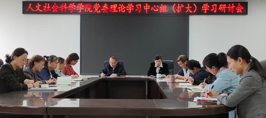 15/ 2024-04人文学院党委理论学习中心组(扩大)专题学习习近平总书记在全国两会期间重要讲话精神和全国两会精神4月15日上午,人文学院在朝阳楼0317会议室召开了党委理论学习中心组(扩大)会议。学院党委理论学习中心组成员参加学习会,教研室主任、党支部书记及综合办、学工办全体人员列席会议,会议由学院党委书记孙晓辉主持。会上,学习传达了习近平总书记在全国两会期间重要讲话精神、全国两会精神和省委理论学习中心组第二十三次集体学习会议精神等内容。中心组成员、列席人员就推动学院高质量内涵式发展,结合思想工作实际谈认识、...