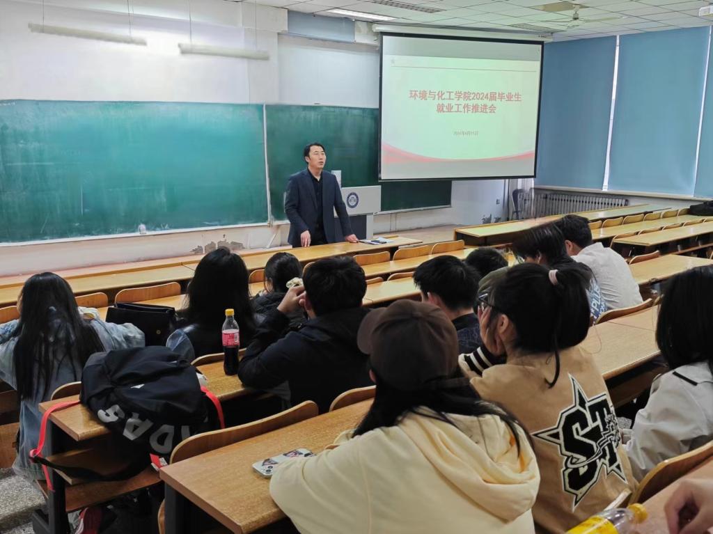 15/ 2024-04环化学院召开就业工作推进会为进一步帮助2024届毕业生认清当前就业形势,把握就业机会,实现高质量就业。4月11日下午,环化学院在科厦N108举办了未就业学生推进会。学院副书记樊晓东以及70余名未就业学生参加会议,会议由就业辅导员姜雷主持。会议开始,姜老师通报了学院2024届毕业生就业工作整体情况,号召同学们积极参加宣讲会,把握工作机会。学院副书记樊晓东分析了当前严峻的就业形势,希望即将步入社会的同学们树立理性的就业观念,积极参加应聘,...