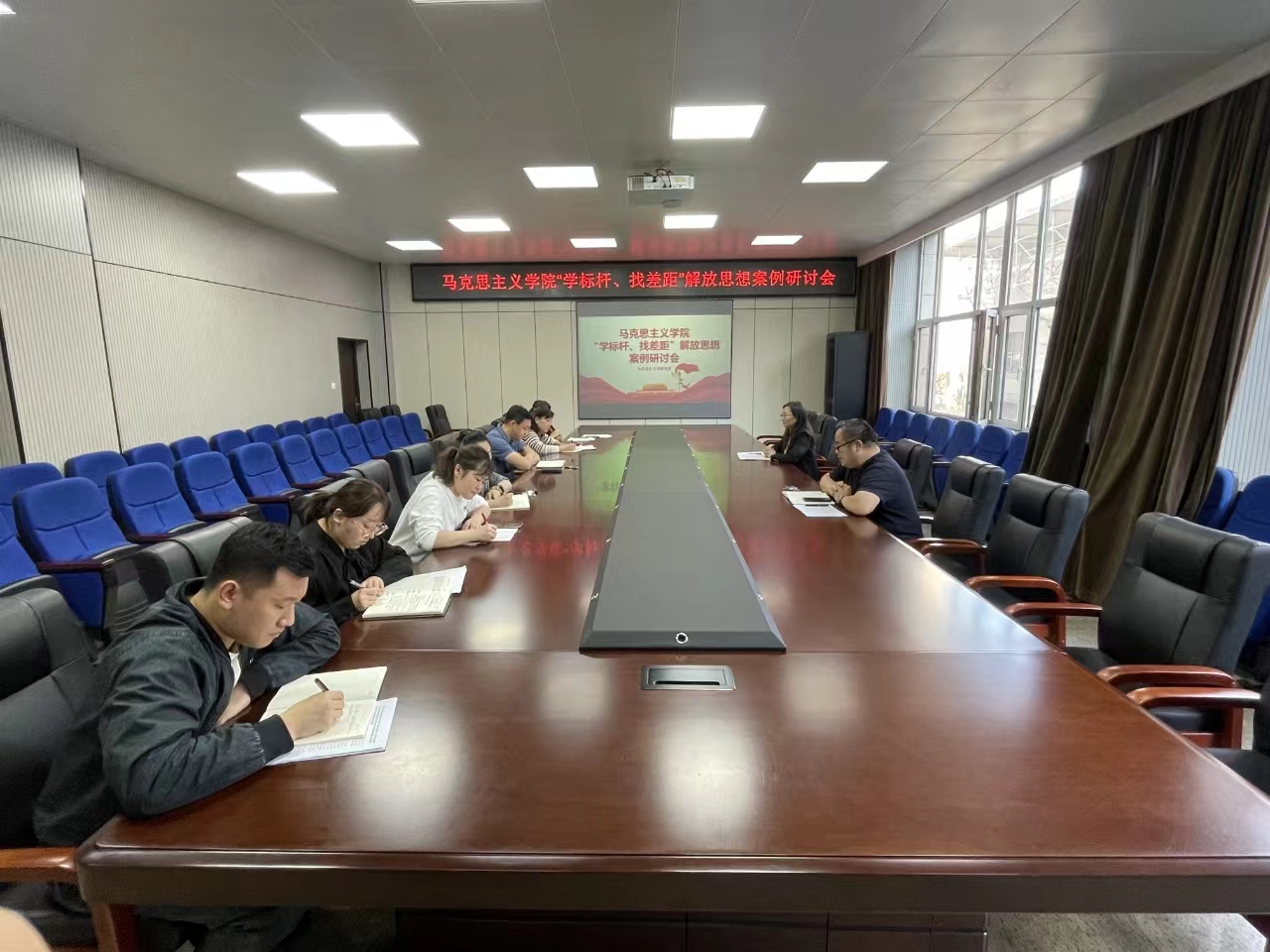 19/ 2024-04【学标杆·找差距】马克思主义学院召开“学标杆、找差距”解放思想案例研讨会为深入贯彻落实学校《深化能力作风建设“抓基层、打基础、强落实、见实效”活动实施方案》要求,促进思想解放、凝聚发展共识、推进高质量发展。4月17日下午,马克思主义学院召开“学标杆、找差距”解放思想案例研讨会,学院班子成员、机关各科室主任参加会议。会议由学院党委书记张影主持。本次研讨会结合学院发展实际,在学习习近平总书记关于新质生产力重要论述和全国两会精神的基础上,选取了省委书记许勤在《学习时报》发...