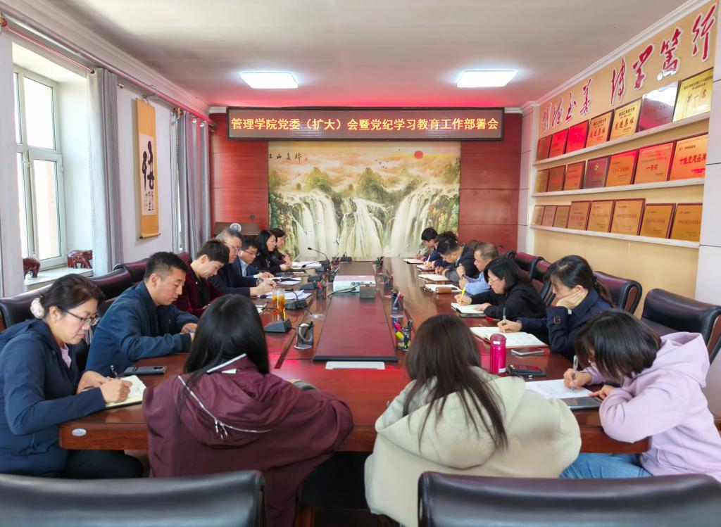 22/ 2024-04【党纪学习教育】管理学院召开党委(扩大)会暨党纪学习教育工作部署会议按照学校党委统一安排部署,为深入学习贯彻习近平总书记关于党纪学习教育的重要讲话和重要指示精神,全面启动学院党纪学习教育工作。4月19日,管理学院在三楼会议室召开党委(扩大)会暨党纪学习教育工作部署会议。学院党委班子成员、纪委委员、教师党支部书记和全体辅导员参加会议,会议由学院党委书记何景洋主持。会上,通过“第一议题”传达学习了习近平总书记关于党纪学习教育的重要讲话重要指示精神和中央党的建设工作领...