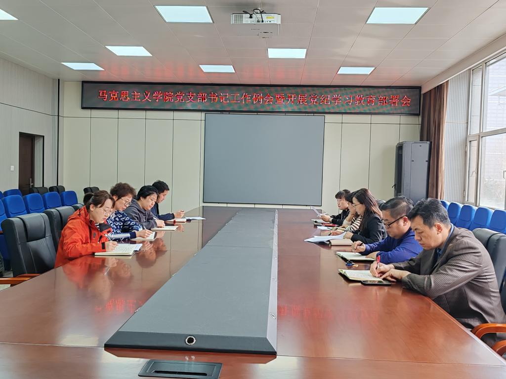 22/ 2024-04【党纪学习教育】马克思主义学院召开党支部书记工作例会暨党纪学习教育工作部署会4月18日下午,马克思主义学院在科技大厦高层二楼会议室召开党支部书记工作例会暨党纪学习教育工作部署会。学院党委委员、各党支部书记参加会议。学院党委书记张影主持会议并就开展党纪学习教育工作进行了安排部署。会上,学习了习近平总书记在二十届中央纪委三次全会和湖南考察时关于党纪学习教育的重要讲话和重要指示精神,传达了中共中央办公厅《关于在全党开展党纪学习教育的通知》精神、学校党委《关于在全校开展党纪学习教...
