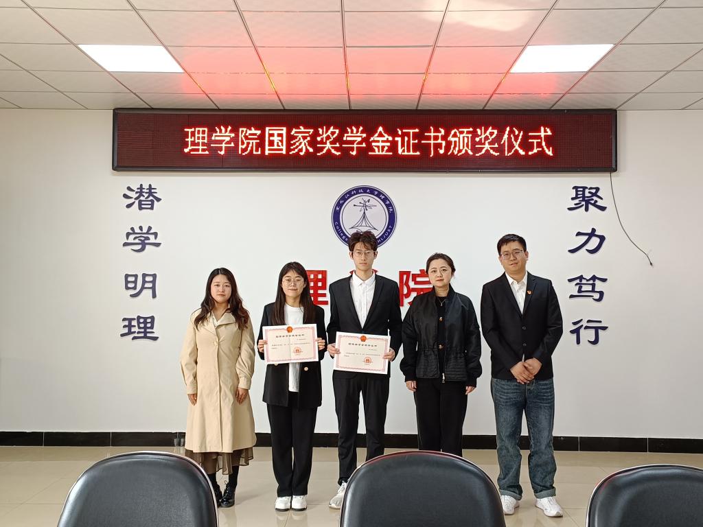 25/ 2024-04理学院开展“才俊领航 榜样传承”国家奖学金颁奖仪式和巡回经验交流分享活动为进一步加强学风建设,发挥榜样典型示范引领作用,理学院开展“才俊领航 榜样传承”国家奖学金颁奖仪式和巡回经验交流分享活动。4月16日下午,在学院二楼会议室举行国家奖学金颁奖仪式。学院党委副书记刘星彤和全体辅导员以及国家奖学金获得者参加活动。党委副书记刘星彤为获得国家奖学金的学生颁发获奖证书,并合影留念。同时,学院开展巡回经验交流分享活动,邀请了物理20-1班程菊悦、物理21-2班项高鹏以及辅导员邓庆超作为...
