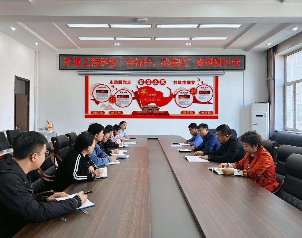 10/ 2024-05【学标杆·找差距】矿业工程学院召开“学标杆、找差距”解放思想案例研讨会为贯彻落实学校《深化能力作风建设“抓基层、打基础、强落实、见实效”活动实施方案》的安排部署,5月7日,矿业工程学院召开“学标杆、找差距”解放思想案例研讨会。学院党委委员、全体党支部书记参加会议,会议由学院党委书记刘海涛主持。会上,党委副书记李强领学了哈尔滨工业大学《坚持习近平总书记贺信精神引领把党的组织优势转化为服务龙江振兴发展的制胜优势》的典型案例,学院精心选取了黑龙江工业学院资源工程学院教师...