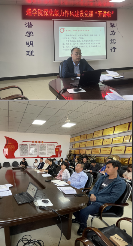 11/ 2024-05理学院开展深化能力作风建设党课“开讲啦”活动为进一步贯彻落实省委、学校党委关于深化能力作风建设的工作要求,锤炼“扎扎实实、踏踏实实、求真务实”的优良作风,学院党委于5月8日在二楼会议室开展了深化能力作风建设党课“开讲啦”活动,会议由学院党委书记贺龙军主持,学院中层干部及综合办、学工办、基础数学部党员教师参加了会议。会上,学院党委书记贺龙军以“摆正位置 严实作风 持续推进学院高质量发展”为题为参会人员上了一堂精彩的党课。他指出,党员干部要时刻...