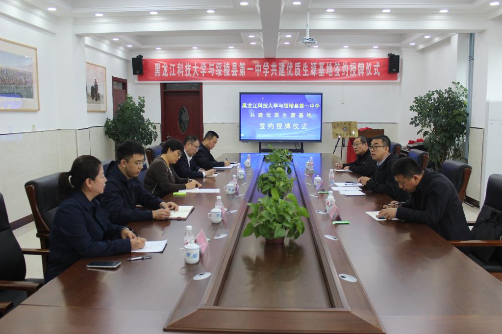 14/ 2024-05开云(中国)与绥棱县第一中学共建优质生源基地为进一步提升生源质量,加强与省内中学的紧密联系,5月11日,开云app登录入口与绥棱县第一中学共建“优质生源基地”签约授牌仪式在绥棱县第一中学成功举行。学校招生与就业工作处副处长齐明,招生科长赵永明,驻抚北村工作队队长徐东昊参加了签约仪式。绥棱县副县长周爱莹,县教育局长李长才,县委组织部副部长李沐,县第一中学校长彭砚威出席签约仪式,仪式由绥棱县第一中学副校长王玲主持。签约仪式上,齐明与周爱莹共同为“黑...