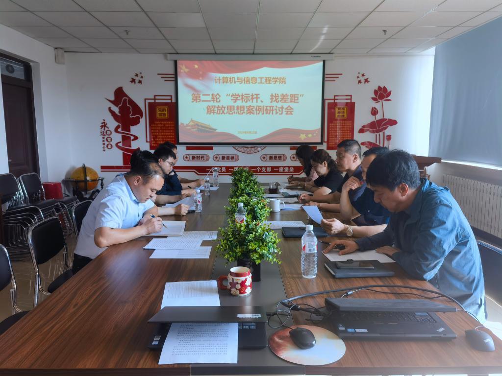13/ 2024-06【学标杆·找差距】计算机与信息工程学院召开第二轮解放思想案例学习研讨会6月12日,计算机学院在朝阳楼1005会议室召开中心组学习研讨会,学习习近平总书记近期重要讲话和重要文章,学习“哈尔滨市:兴起‘冰雪热’走好‘振兴路’”和新时代“枫桥经验”两个典型案例。与会人员聚焦学院的重点工作任务和建设发展进行了学习研讨交流。会议由学院党委书记彭国军主持。会议认为,我省冰雪旅游火爆“出圈”,生动展现了龙江振兴发展的新局面新气象,是学习贯彻习近平总书记“冰天雪地也是金山银山”重要指示...
