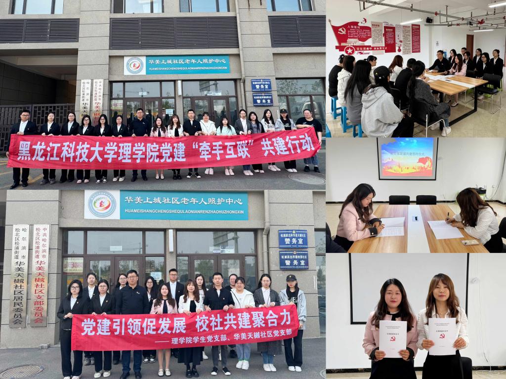 11/ 2024-06理学院与华美天樾社区开展党建共建活动为深入贯彻落实新时代党的建设总要求和新时代党的组织路线,加强基层党组织建设,提升党建工作质量。6月5日,理学院学生党支部书记、学生党员代表到松浦街道华美天樾社区开展党建共建活动暨“结对共建”签约仪式。松浦街道党建办主任郭宁、党支部书记王岩以及社区党员参加了本次活动。签约仪式上,双方对党支部情况和党建工作开展情况分别进行了介绍,分享了党建工作经验、做法,共同探讨整合学院、社区教育资源,创建和谐社区...
