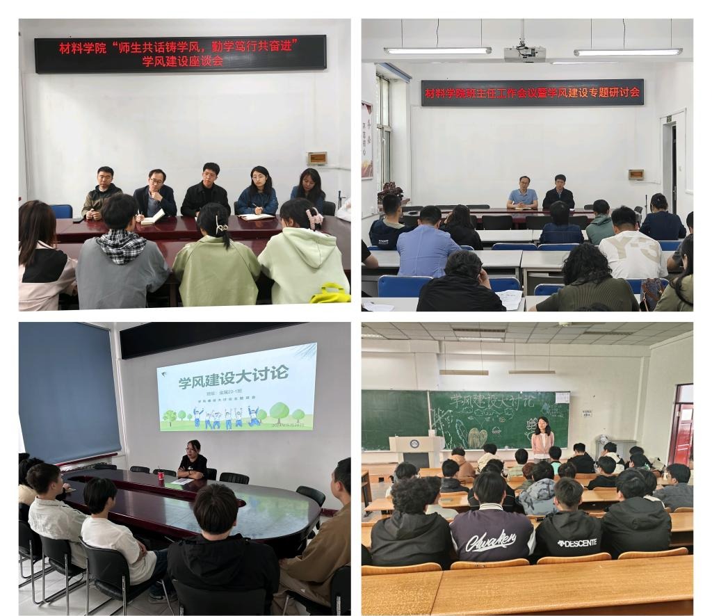 13/ 2024-06材料学院多措并举开展学风建设系列活动为进一步弘扬“尊师、守纪、勤奋、进取”优良学风、充分发挥管理育人作用,激发学生的学习兴趣和学习潜能,增强学生的学习能力,切实有效加强学风建设,按照学校相关要求,4月28日-6月10日,材料学院多措并举开展学风建设系列活动。研风破浪启新篇,学风领航筑未来。学院开展学风建设问卷调研工作,为针对性开展各项学风建设工作提供有力依据;召开班主任学风建设专题研讨会和“师生共话铸学风,勤学笃行共奋进”学风建设座谈会...