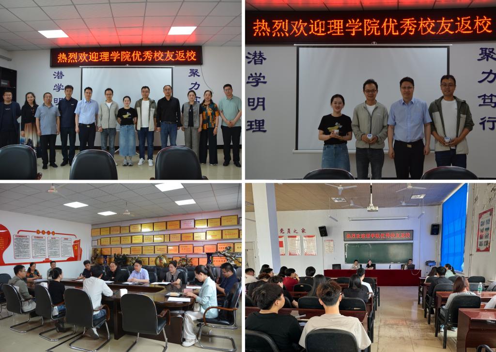 17/ 2024-06理学院优秀校友返校交流6月12日,理学院优秀校友应用物理学2011级孙翠婷博士、陈旭东博士和2013级马一巍博士返校交流。理学院在二楼会议室召开座谈会与三位校友深入交流。学院全体班子成员、全体辅导员及部分物理系教师参加此次座谈会。座谈会由院长、院校友会会长张向华主持。张向华代表学院对三位校友的到来表示欢迎,并围绕学院发展、学科建设、人才培养、教学成果等方面介绍了近年来学院的基本情况,并代表学院为三位校友赠送了纪念品。三位校友感...