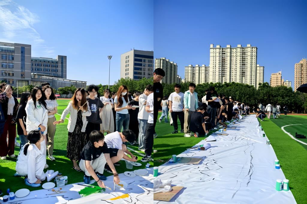 19/ 2024-06人文学院举办《千里江山图》青绿山水长卷绘画暨《我的学校》思维导图绘制活动盛夏将至,天晴霁,骊歌声起,又是一年毕业季。在喜迎建党103周年之际,6月16日,人文学院在体育文化休闲广场举办了《千里江山图》青绿山水长卷绘画暨《我的学校》思维导图绘制活动,这是美育浸润校园行动的创新举措,也是人文学院美育教研室带领2023级美育课程学生送给全体2024届毕业生的盛大礼物和美好祝福。《千里江山图》是北宋王希孟创作的绢本设色画,现收藏于北京故宫博物院。此画“气象磅礴,吞吐山河,堪称宋朝版《航...