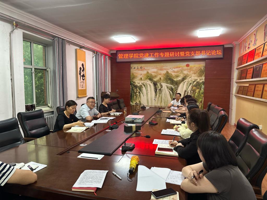 20/ 2024-06管理学院召开党建工作专题研讨暨党支部书记论坛为深入学习贯彻习近平总书记关于党的建设的重要思想,认真落实《中国共产党普通高等学校基层组织工作条例》及党中央关于在全党开展党纪学习教育的要求,充分发挥党支部的战斗堡垒和党员的先锋模范作用,扎实提升基层党支部书记党建创新工作水平,6月17日上午,管理学院党委在学院三楼会议室组织召开管理学院党建工作专题研讨暨党支部书记论坛。学院党委书记何景洋、副书记徐海英以及各学生党支部书记参加了此次论坛。会上,学院...