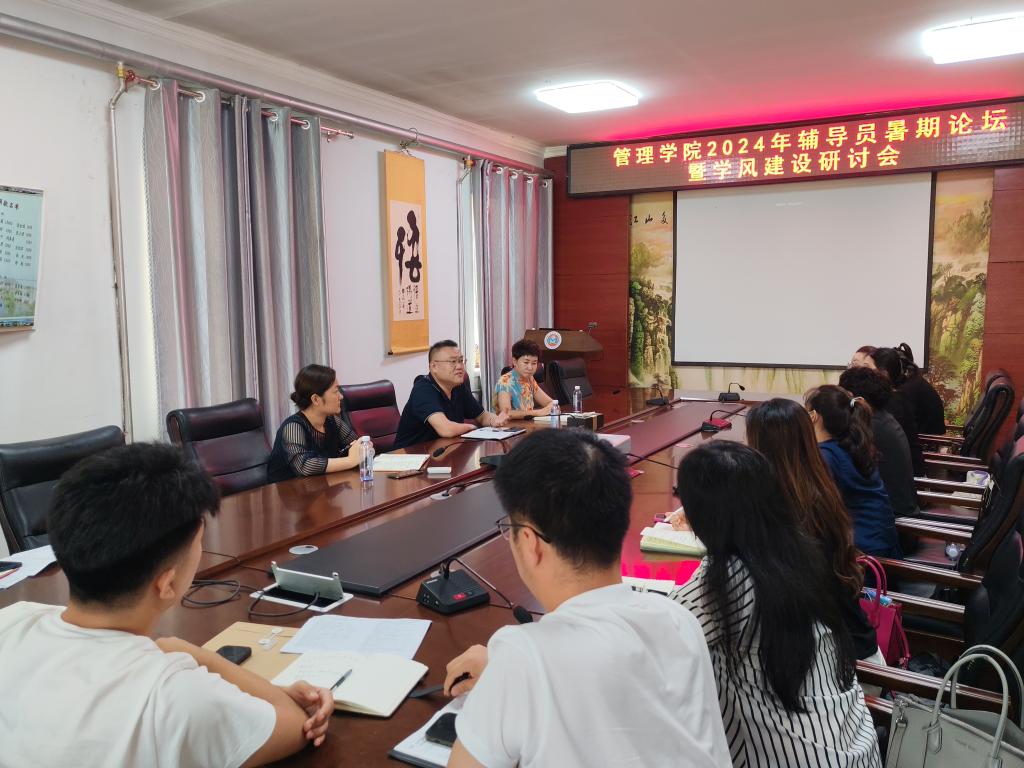 26/ 2024-08管理学院召开2024年暑期辅导员论坛暨学风建设研讨会为深入学习习近平新时代中国特色社会主义思想和党的二十届三中全会精神,贯彻落实开云(中国)2024年暑期论坛暨秋季学期开学工作会议相关精神,提升辅导员队伍的业务能力和工作水平,管理学院于8月23日召开了2024年暑期辅导员论坛暨学风建设研讨会,本次论坛主题是“聚焦学风建设 引领学生全面发展”。学院党委书记何景洋、党委副书记徐海英、学工办全体辅导员参加本次会议,会议由徐海英主持。会上,邀请哈尔滨师范大学学生处副处长李...