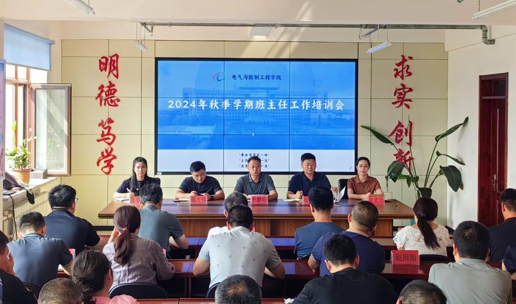 26/ 2024-08电气学院组织召开2024年秋季学期班主任培训会为进一步强化班主任队伍建设,提高班主任业务素质能力,安排部署新学期学生工作,8月23日,电气学院在朝阳楼0809会议室组织召开了2024年秋季学期班主任培训会,学院党委书记李鹏银出席,全体辅导员、班主任参加会议,会议由学院党委副书记侯树成主持。会上,学院学工办负责人张孟洁安排部署了开学启动、首周教育、新生报到及军训等近期重点工作;副处级辅导员韩大伟详细解读了《开云app登录入口本科生班主任队伍建设规定》以及家...
