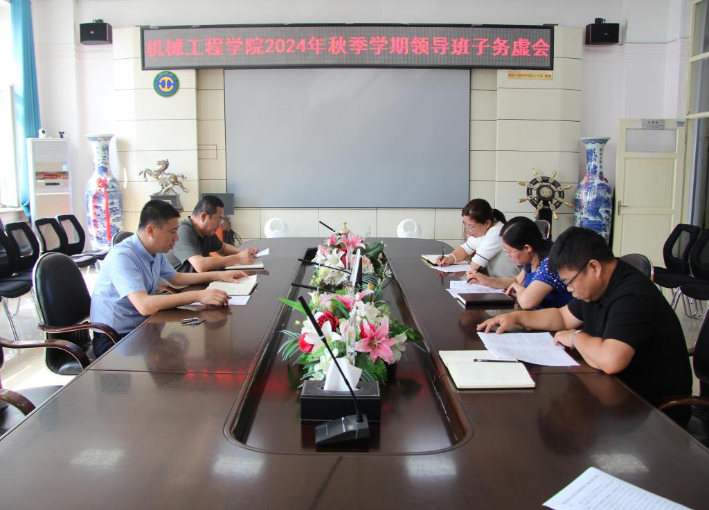 26/ 2024-08机械工程学院召开2024年秋季学期领导班子务虚会为进一步明晰新学期的工作思路、工作举措和工作重点,通过“务虚”为下一步的“务实”提供更多的观点和依据,8月23日下午,机械工程学院在学院二楼会议室召开了2024年秋季学期领导班子务虚会。学院党政领导参加了会议。会议由学院党委书记吕刚主持。会上,副院长齐立涛、张丹,副处级辅导员毕强,分别结合分管工作和所思所想作了交流发言。院长唐庆菊深入剖析了当前存在的问题与不足,进一步明确了下半年主要目标,并强调要以本...