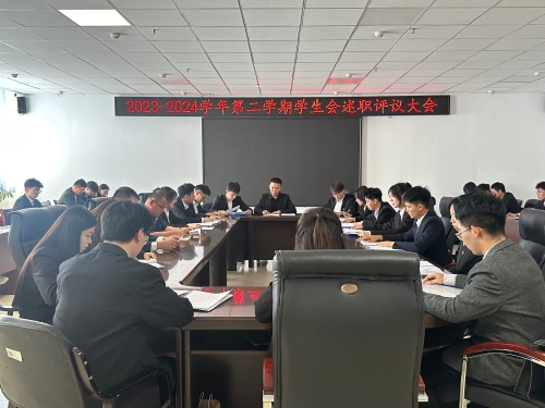 09/ 2024-09学校召开2023-2024学年第二学期学生会述职评议大会9月8日,学校2023-2024学年第二学期学生会述职评议大会在朝阳楼0317会议室召开。校院两级学生(研究生)会工作人员参加会议,校团委宣传部部长、学生会指导教师武昭阳主持会议。会上,校院两级学生(研究生)会执行主席逐一就政治态度、道德品行、学习情况、工作成效、纪律作风等五个方面对过去一学期的工作及个人履职情况进行总结述职,梳理存在的短板弱项,明确下一步工作思路和举措。述职结束后,全体参会人员对校院两级学生会进行了客观、公正的测评。大会对上学期学生会组织的工作进行了全面总结,...