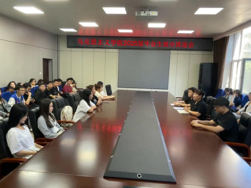 19/ 2024-09马克思主义学院召开2025届毕业生就业推进会为扎实做好2025届毕业生就业工作,提高毕业生就业工作质量,9月18日,马克思主义学院召开2025届毕业生就业推进会,全体毕业生参加会议。会上,副处级辅导员、学工办主任赵红做就业动员,深入分析往年签约就业地区、行业分布、入职单位性质等情况,详细研判目前就业形势及影响因素,积极动员毕业生明确就业方向、做足就业准备、平衡就业形势;细致讲解考公考编、西部计划、三支一扶、特岗教师等多种就业渠道的考试时间与方式,鼓...