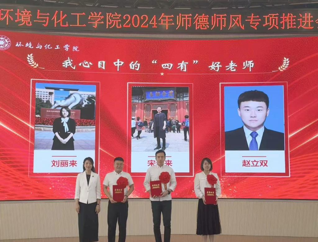 12/ 2024-09环化学院召开师德师风建设专项推进会环化学院于9月10日下午在信息楼报告厅召开了2024年学院师德师风建设专项推进会。学院领导班子、全体教师及荣退教师代表参加了会议,会议由学院党委副书记樊晓东主持。会上,进行了老教师荣退仪式、新教师入职仪式,副院长景介辉带领新教师进行入职宣誓,老教师重温誓词;副处级辅导员周惠玉领学了《新时代高校教师职业行为十项准则》;副院长李立欣宣读了《关于表彰2023-2024学年“优秀班主任”“创新创业优秀指导教师”“我心...