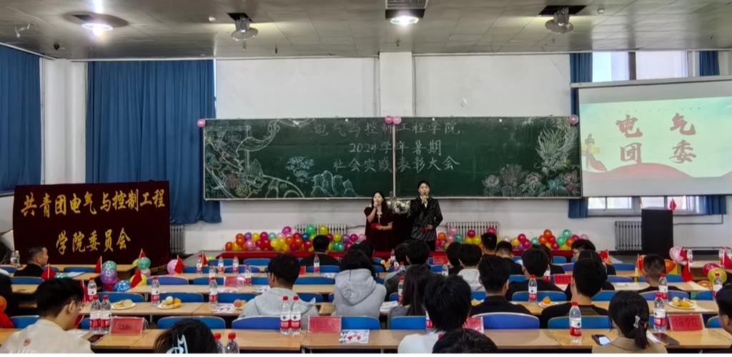 24/ 2024-09电气学院召开2023-2024学年暑假社会实践表彰大会为深入贯彻党的二十届三中全会精神,落实习近平总书记关于青年工作的重要思想,引导青年学生厚植家国情怀、涵养进取品格。电气学院于9月22日在主楼EN0401召开2023-2024学年暑假社会实践活动总结暨表彰大会,学院全体辅导员、300余名学生代表参加本次大会,各学院团委副书记出席会议。会议在团歌《光荣啊,中国共青团》中拉开帷幕。学院团委副书记、智控21-4班庞智远对暑期社会实践工作进行整体回顾与总结;辅导员施号天宣读了《...